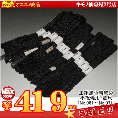 正絹黒色帯締め・不祝儀用・並尺(No.061〜No.071)【キモノ仙臺屋の和装小物特集】